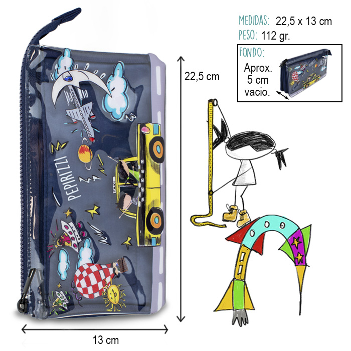 Descripción de PORTATODO TRIPLE PEPIRIZZI PEPITA VIAJERA