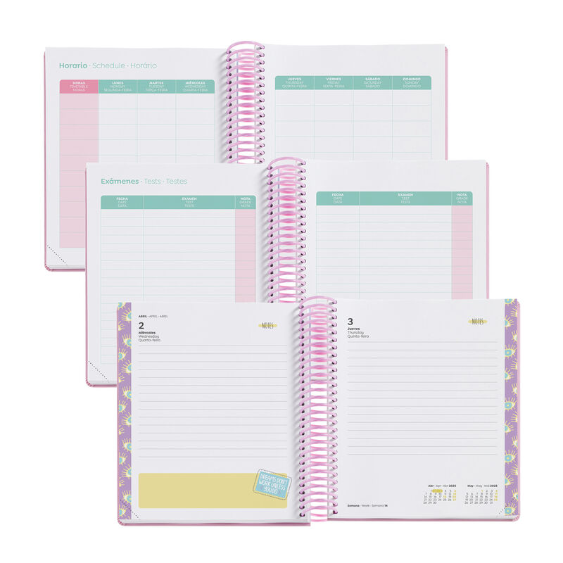 Agenda escolar Miquel Rius día página tapa dura, incluye adhesivos