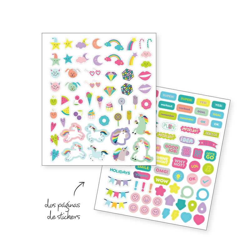 Agenda escolar Miquel Rius día página tapa dura, incluye adhesivos