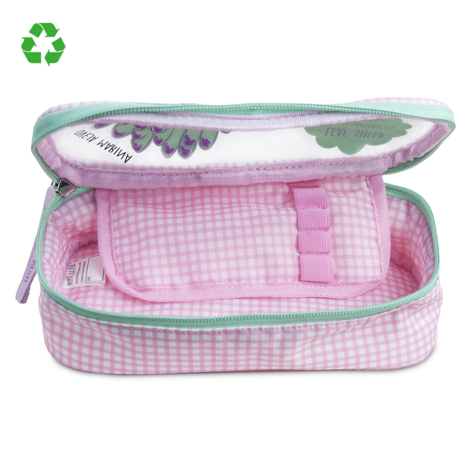 - Neceser de aseo con un departamento y solapa interior para organizar diferentes utensilios de aseo.
